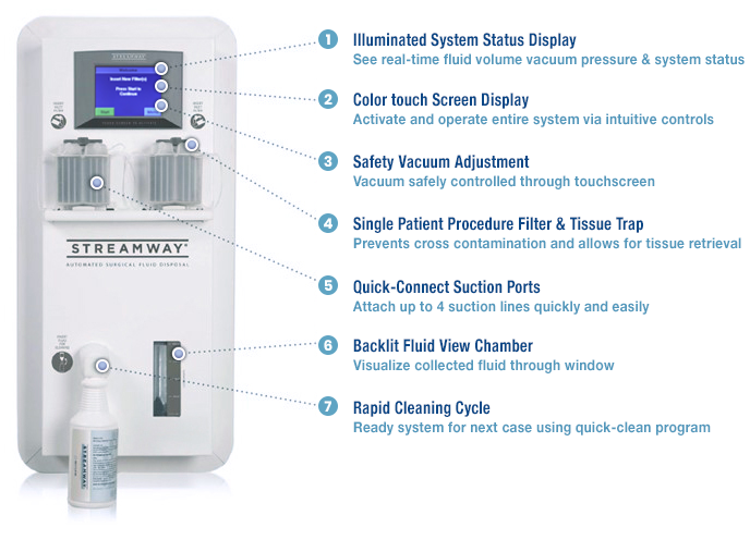 • Direct-to-drain fluid removal for safe, continuous collection and disposal